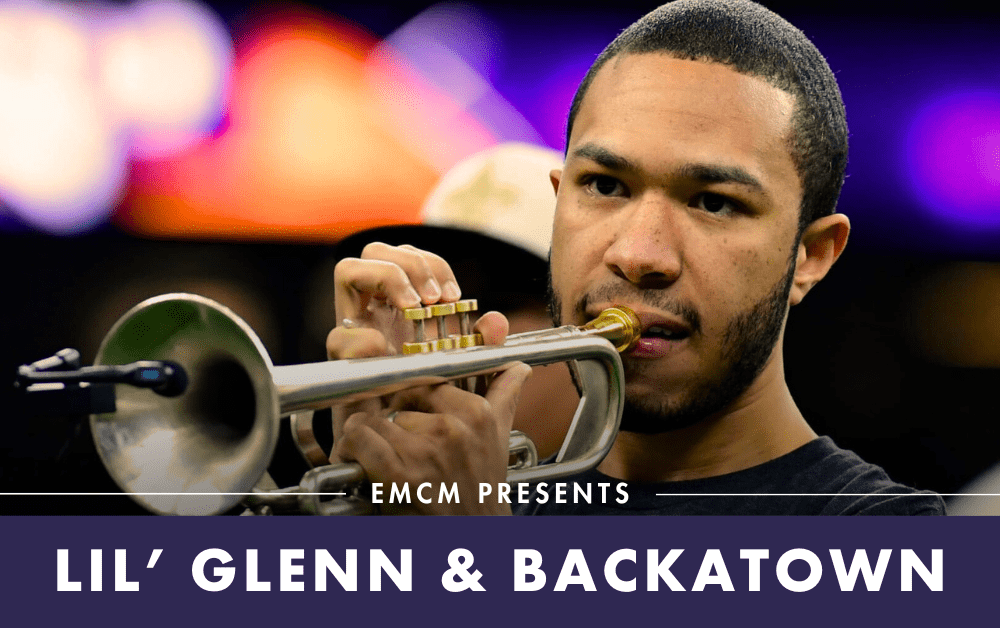 Lil’ Glenn and Backatown brings a high-energy mix of funk, jazz, rock, and blues straight from the heart of New Orleans. Led by trumpeter Glenn “Lil’ Glenn” Hall—best known for his work with the Rebirth Brass Band—the group has lit up stages from Jazz in the Park to the NBA All-Star Celebrity Game, and now, the Ellis Marsalis Center for Music.